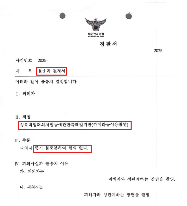[성폭법위반(카메라등이용촬영죄)] 불송치(혐의없음) 결정
