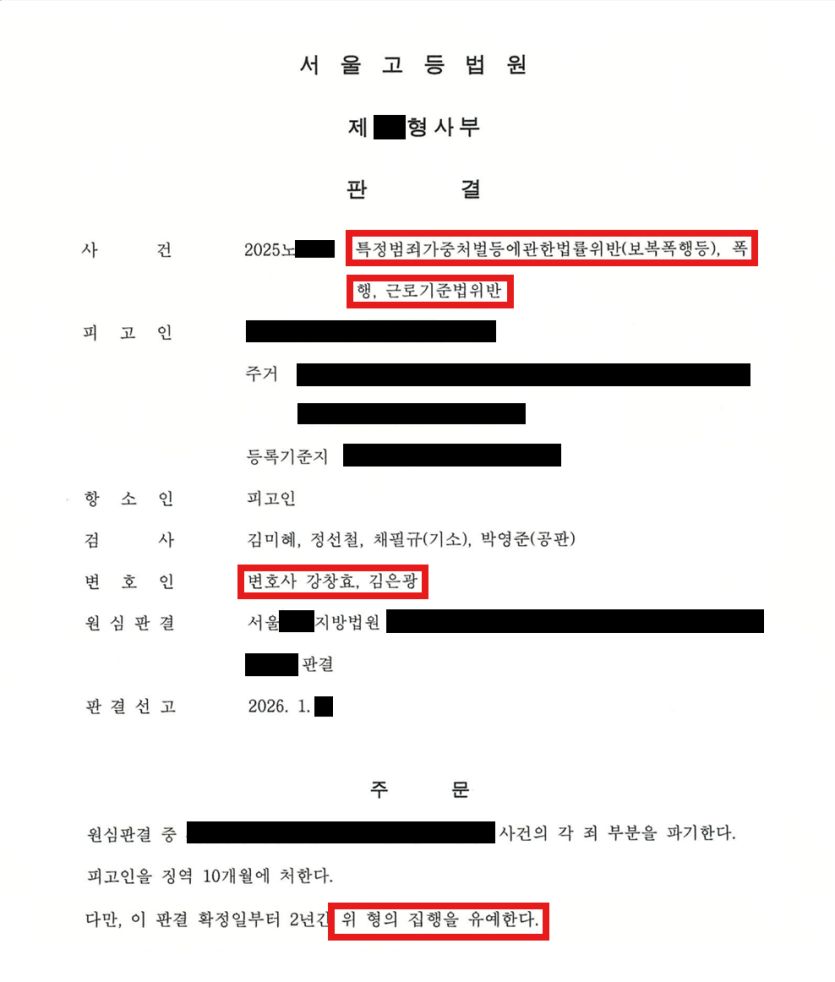 1심에서 실형이 선고되고 법정구속까지 이루어졌던 사안이었음을 고려하면, 항소심에서 보석과 함께 석방되고, 곧이어 집행유예 판결을 받은 것은 유의미한 결과가 아닐 수 없습니다.