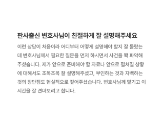 판사 역임 변호사가 첫 상담부터 함께 한다는 점 미리 약속드립니다.