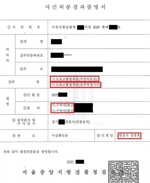 오늘은 음주운전 2번에 무면허운전과 음주측정거부까지 저지른 사건임에도 불구하고, 정식재판 없이 구약식 벌금형으로 종결된 성공사례를 소개해드리겠습니다.