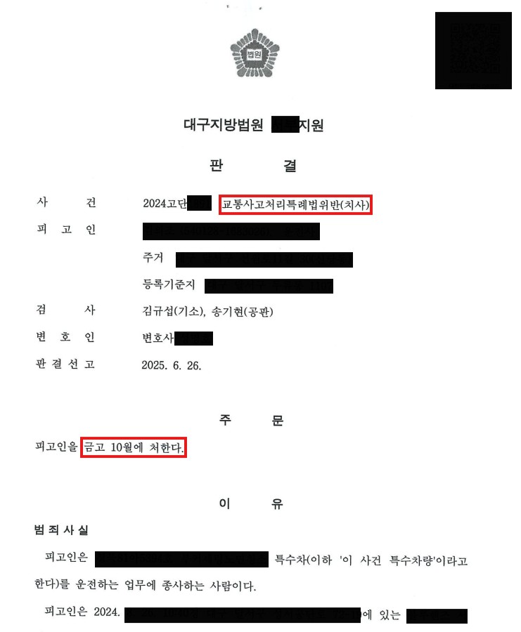 이번 사건 역시, 감정신청 단계부터 판결까지 공판검사님과의 긴밀한 조율이 있었기에 객관적 입증이 가능했고, 피고인의 과실 부인 주장을 효과적으로 반박할 수 있었습니다.