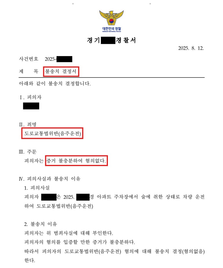 [음주운전] 불송치(혐의없음) 결정